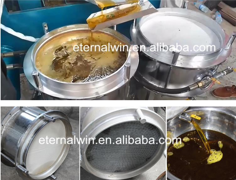 All models of oil presses are equipped with two vacuum oil filters, as shown in the picture below, after the oil is pressed, the oil will be filtered by the vacuum oil filters, which removes impurities and makes the oil cleaner and healed