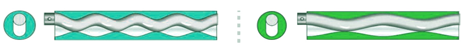 The geometric shape and size of the first-stage double-start thread are the same as that of the screw pump and the second-stage screw pump, and the ellipse and eccentricity are also the same. But the pitch is twice that of the double-ended 2-stage shape rotor/stator. Therefore, at a maximum differential pressure of 6bar 85psi, the pump produces a flow ratio of 300% that of the S-shaped geometry