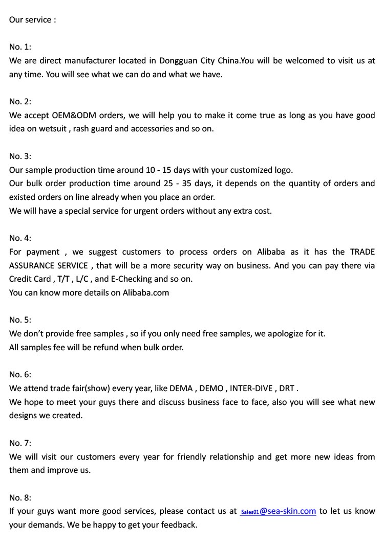 Shenzhen Seaskin Sports Goods Co., Ltd. is one of the professional neoprene products ( wetsuits ) factories in China.