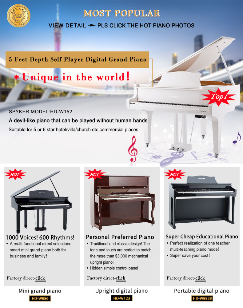 HUADU Piano Manufacturing Co., Ltd is founded in 2006, we are modern manufacturer, who is specialized in 88keys digital piano. Advanced natural Piano engine provides a new level of authenticity and sophistication. Our products exports to worldwide, the products passed CE certification. Relying on our rich experience in building fine acoustic pianos, Huadu builds digital pianos that offer the finest tone and touch available. Wooden-key actions, Harmonic Imaging sound technology, USB digital audio and the unique Soundboard Speaker System are just a few of the innovations found in our digital pianos and keyboards we sell worldwide, like Japan, Middle east, USA and European countries.