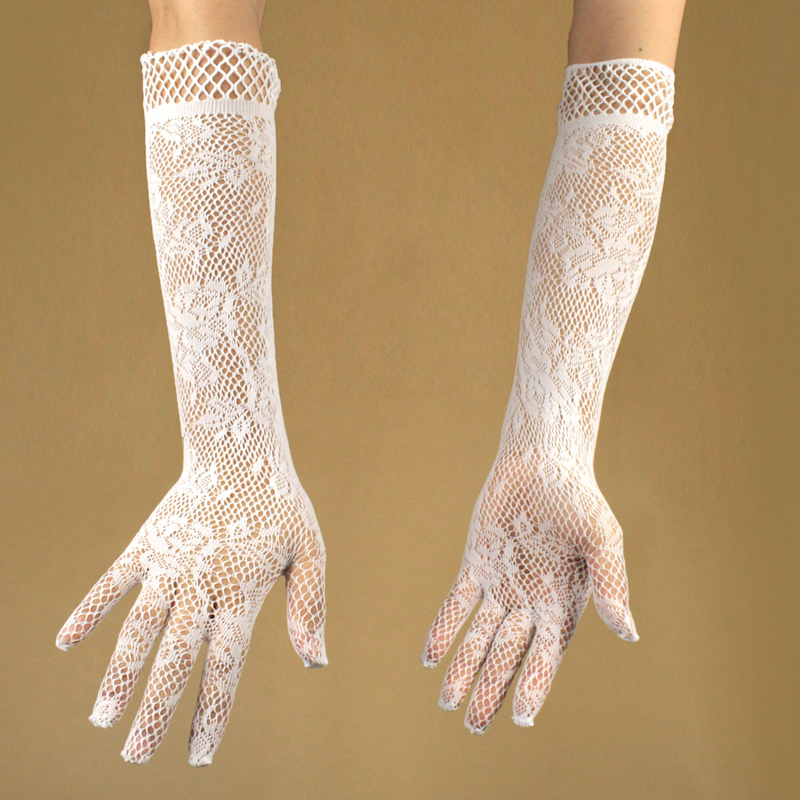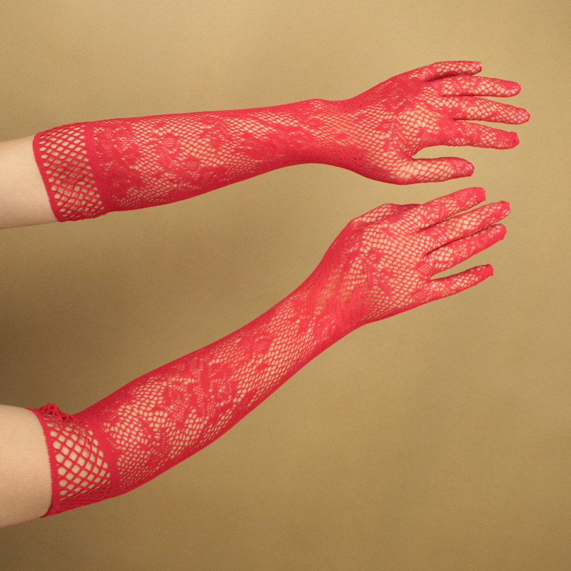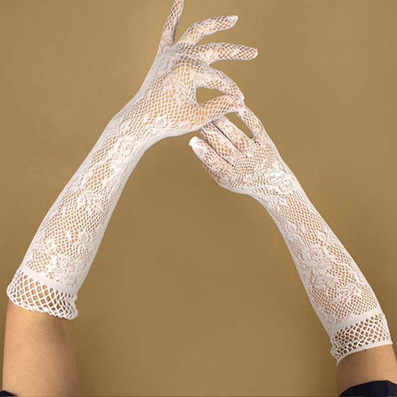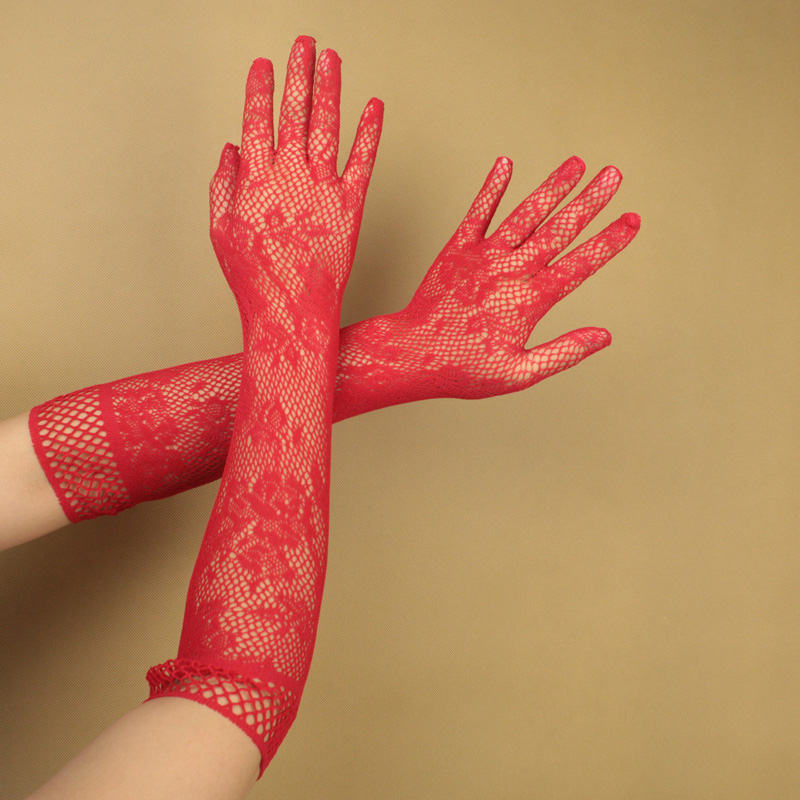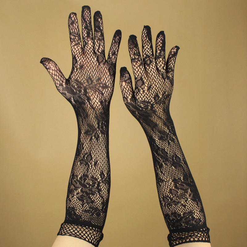 Sexy Long Sleeve Fishnet Gloves Sheer Lace Black Gloves Elastic Bridal Long Sleeve Mesh Jacquard Women