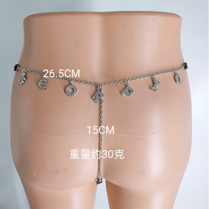 Sexy T-Chain Stainless Steel Waist Chain Custom Rhinestone Letter Pendant Waist Chain