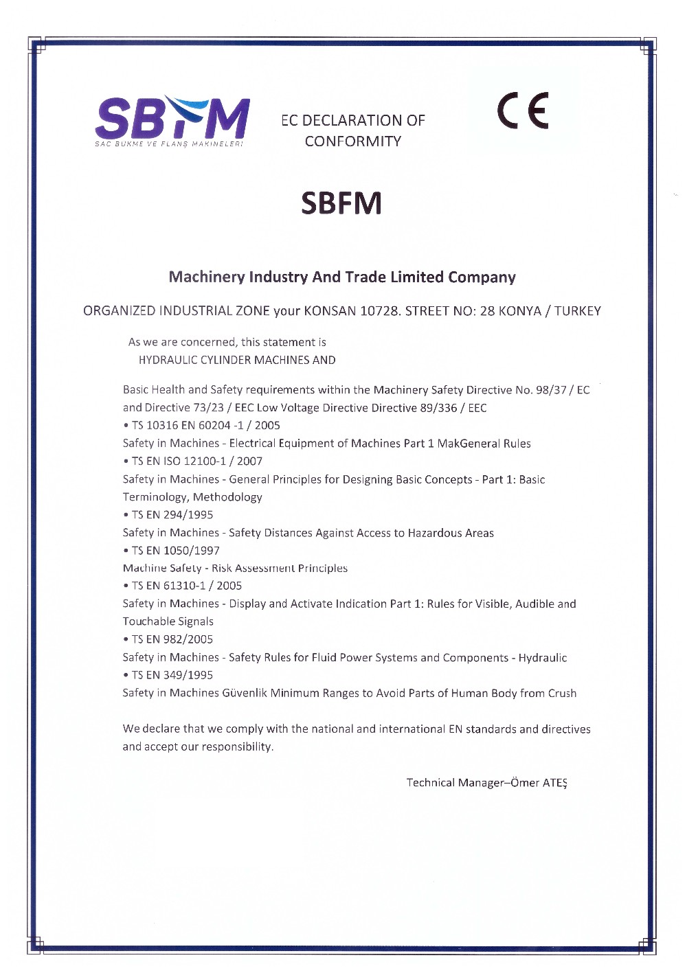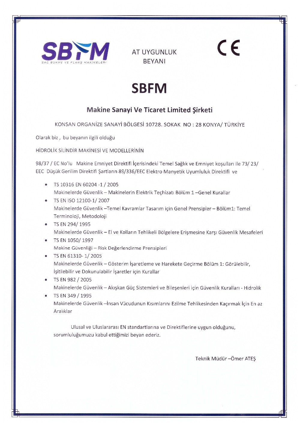 - SBFM MAKINE SANAYI VE TICARET LIMITED SIRKETI