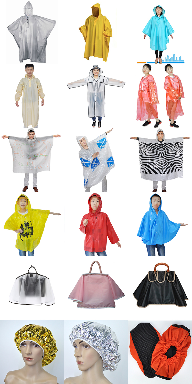 1. The material we make the poncho waterproof is reliable PP/PE/PVC/EVA plastic or nylon fabric, they are smooth, non-toxic and odorless. Material thickness is 0.02-0.4mm or customized. It is very lightweight, portable and environmentally friendly.