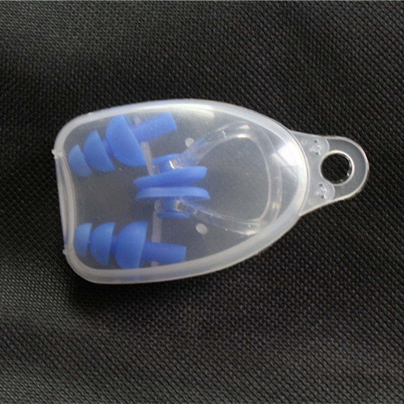 Silicone Swimming Earplugs Nose Clip Bundle Set Waterproof Set Blue