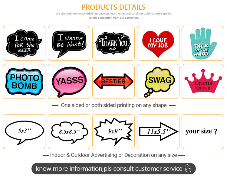| Packaging details: | 100pcs/plastic bag or customized custom printed 3mm waterproof outdoor advertising PVC party photo booth props | model: | photo booth props |