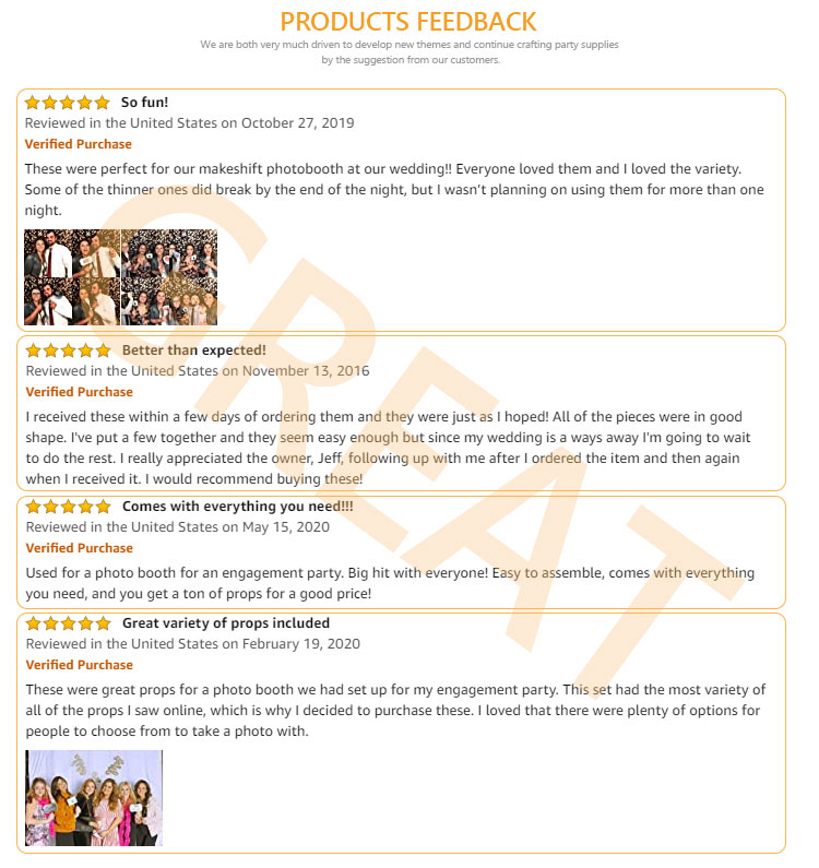 A photo booth is a great way to create fun memories for your guests at any wedding, birthday party, bachelorette party, or any other event! A party photo booth is a fun way to not only include your guests at your event, but also ensure they have a meaningful gift to take home. Explore all the fun, silly, or party-themed prop and background options below.