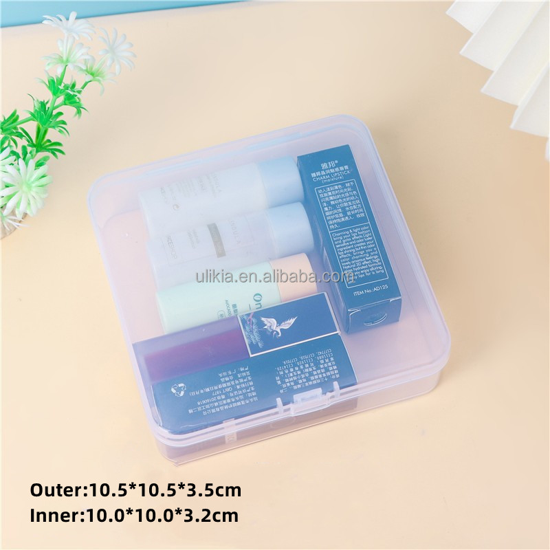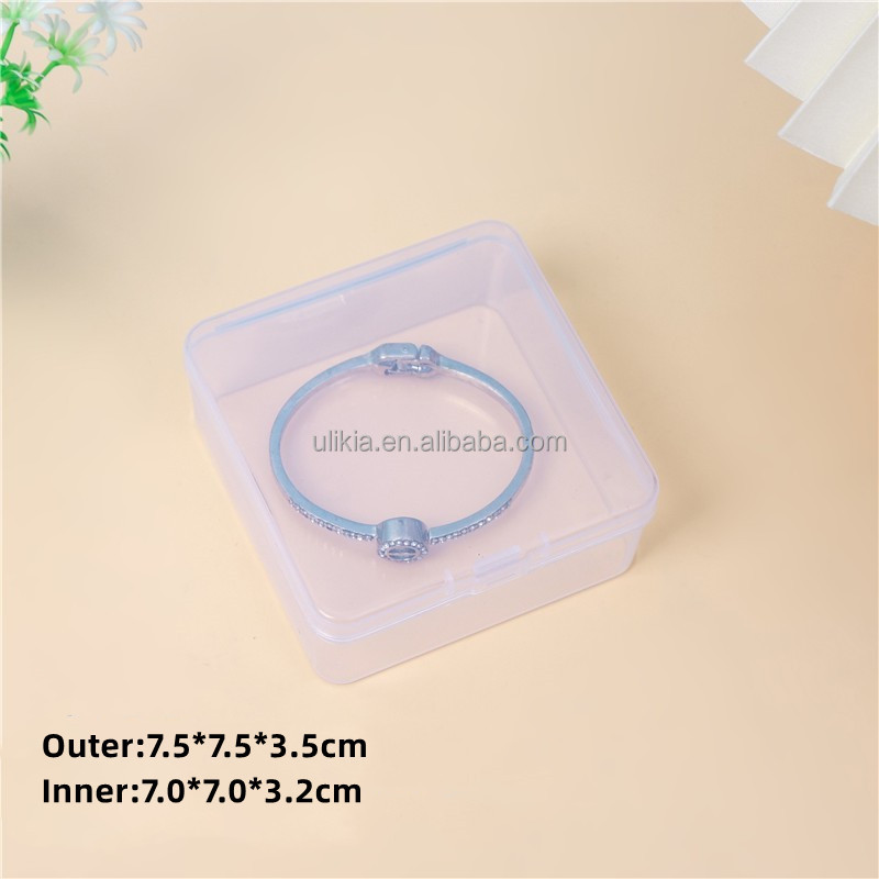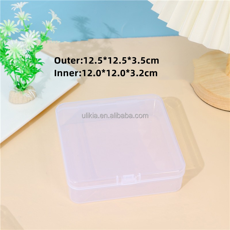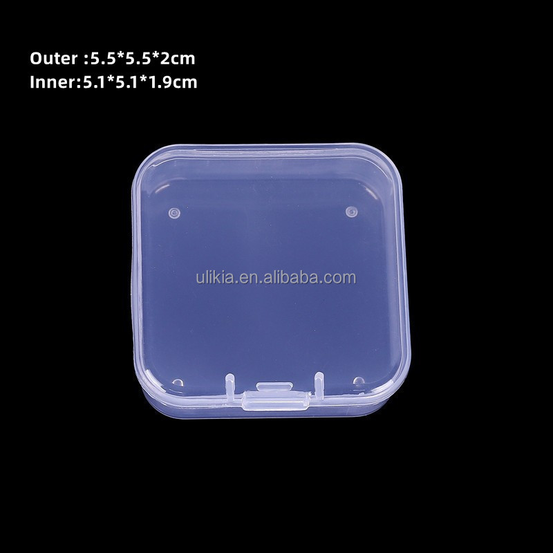 Small Square Clear Plastic Bead Storage Box with Hinged Lid for Small Items, Crafts, Jewelry