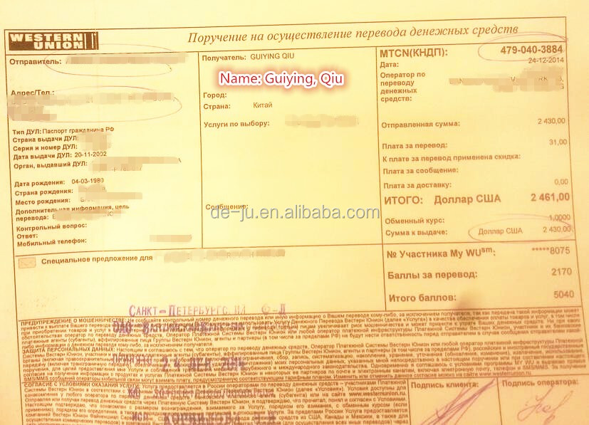 Sample/small order: T/T, ESCOW, PAYPAL, Western Union