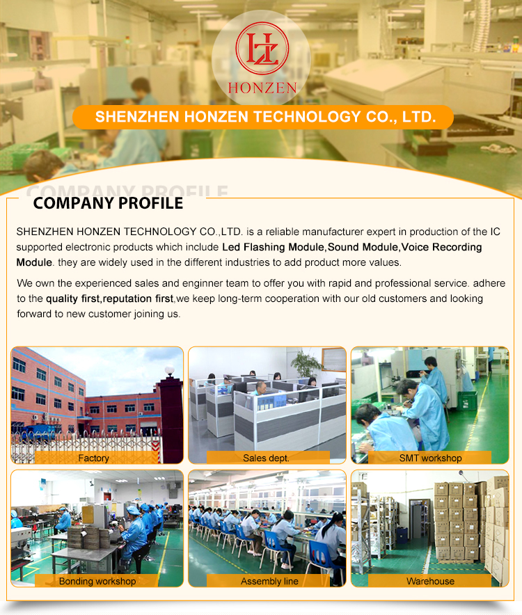 SHENZHEN HONZEN TECHNOLOGY CO.,LTD. expert in making customized high quality pop led flashing module,sound module and other electronic products PCBA with more than 20 years experience.