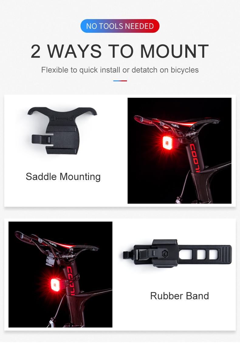 *[Battery Life] Built-in 350mAh Lithium Polymer battery comes with a USB cable to charge from your computer, wall charger, power bank or any other device with a USB port. After charging for about 2 hours, the tail light can work for 10-30 hours in different modes.