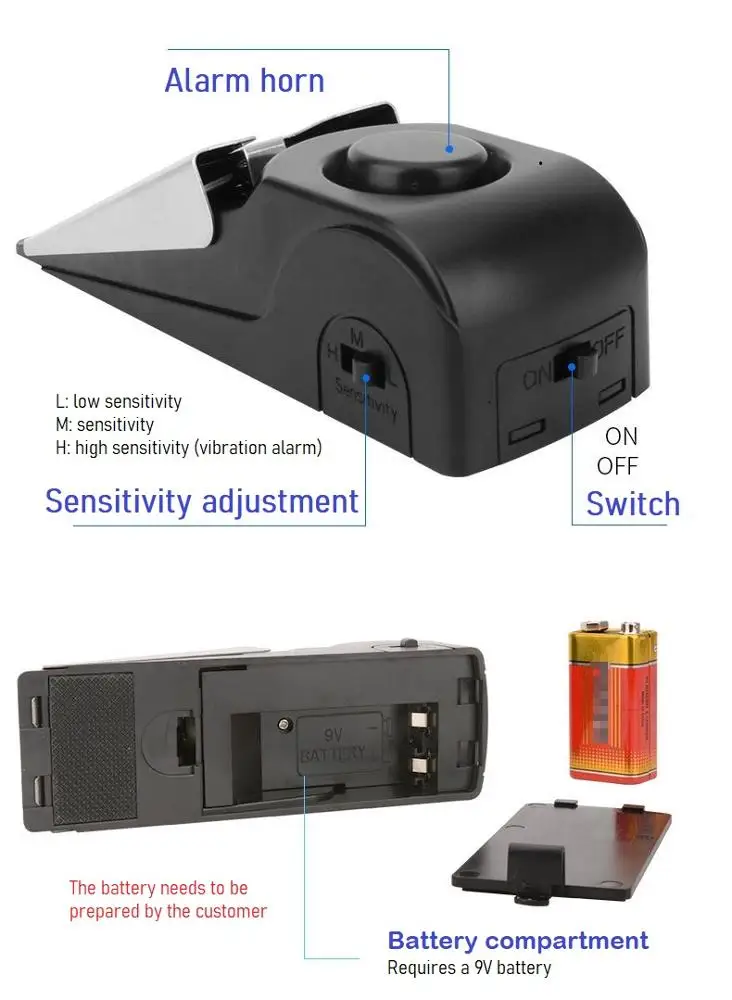 | Working modes: | Vibration sensor; | Battery: | 1* 9V; |