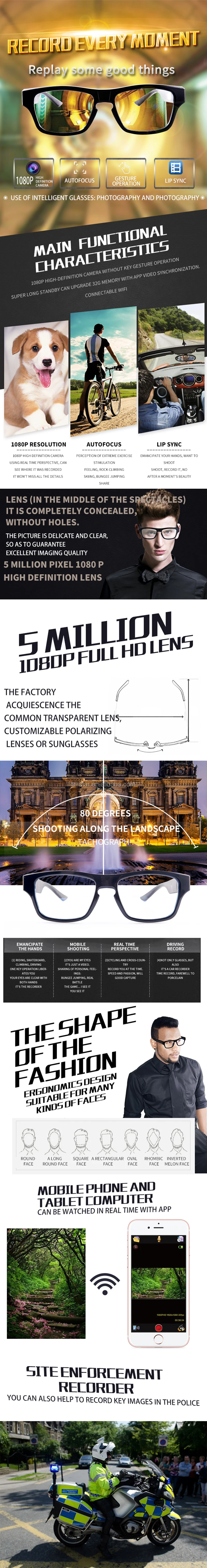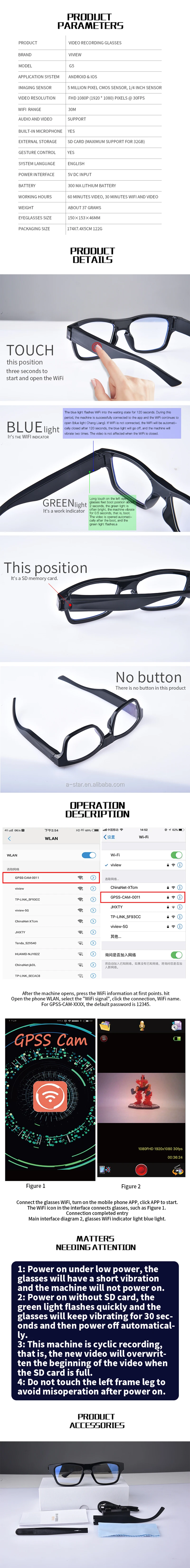 | Product name: | Eye glasses camera Camcorder Outdoor Sports Wifi camera glasses wifi; | Battery: | Built in 300mah Li -battery; |