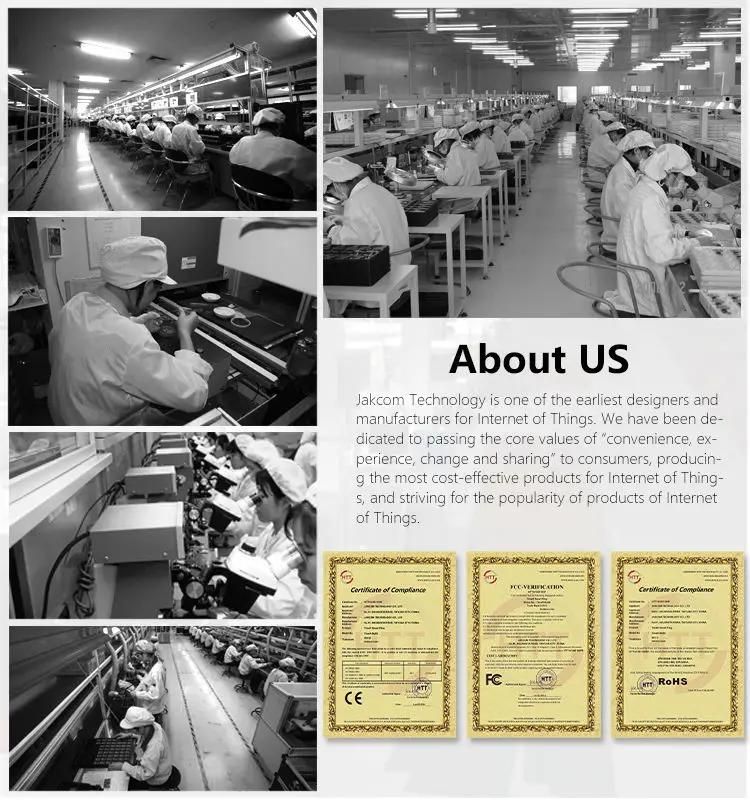 Jakcom Technology is one of the earliest designers and manufacturers for Internet of Things. We have been dedicated to passing the core values of “convenience, experience, change and sharing” to consumers, producing the most cost-effective products for Internet of Things, and striving for the popularity of products of Internet of Things.