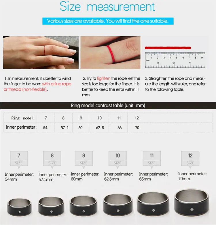 1. In measurement, it is better to wind the finger to be worn with a fine rope or thread (non-flexible).