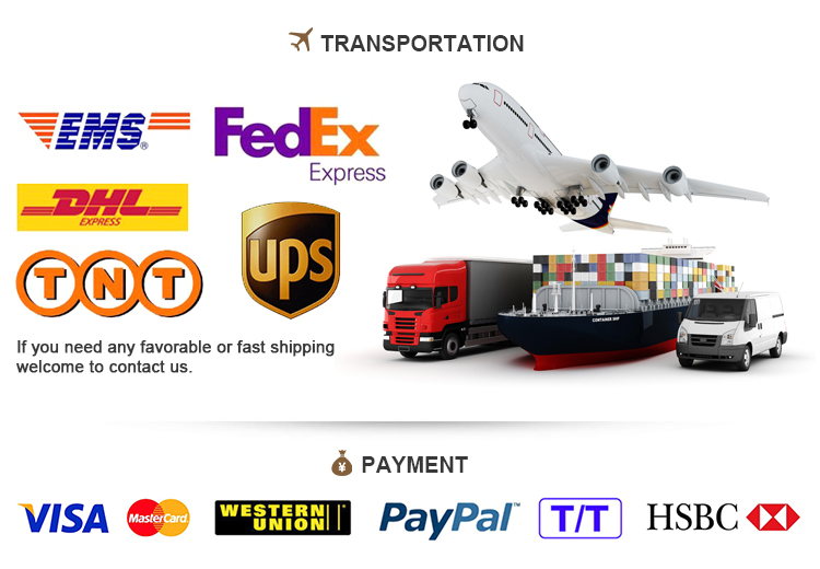 A: We can support Alibaba trade assurance payment (Alibaba supports T/T, credit card, Visa and Mastercard), Paypal and Western Union.