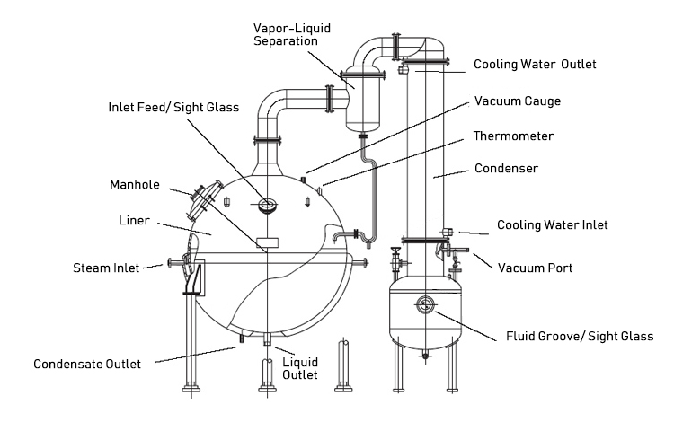 The spherical concentrator is mainly suitable for the concentrated distillation of heat-sensitive materials and the concentrated and concentrated extraction of organic solvents (such as alcohol) in the industries of traditional Chinese and western medicine, starch sugar, dairy products, biopharmaceuticals, and chemical industry. It can effectively reduce the active ingredients of heat-sensitive materials. damage.