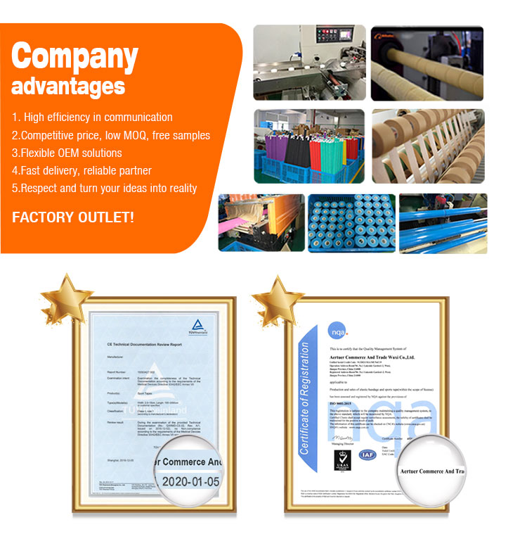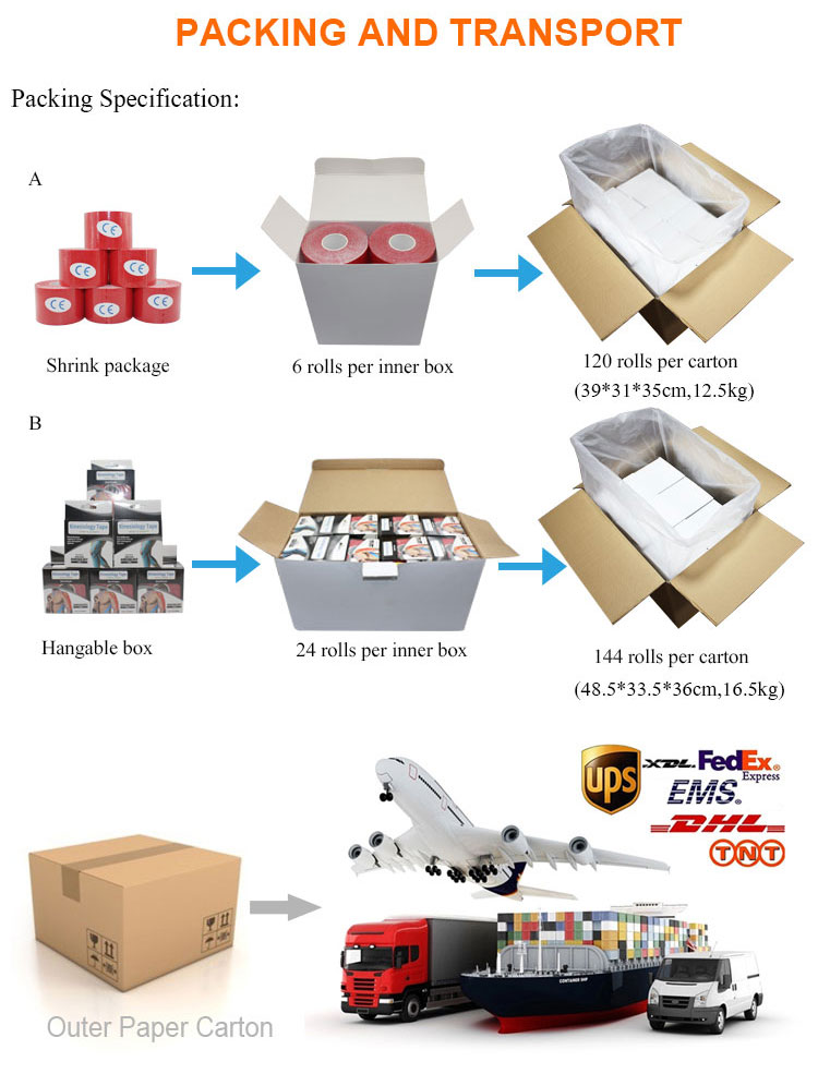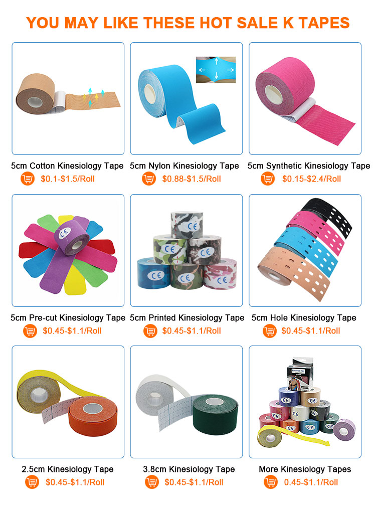 | Packaging Details: | 2 packing ways of 5cm*5m kinesiologr tape 1st: shrink wrap 6 rolls/inner box 120 rolls/cotton 2nd: hangable box 24 rolls/inner box 144 rolls/cotton | Combo packs provide: | 5 |