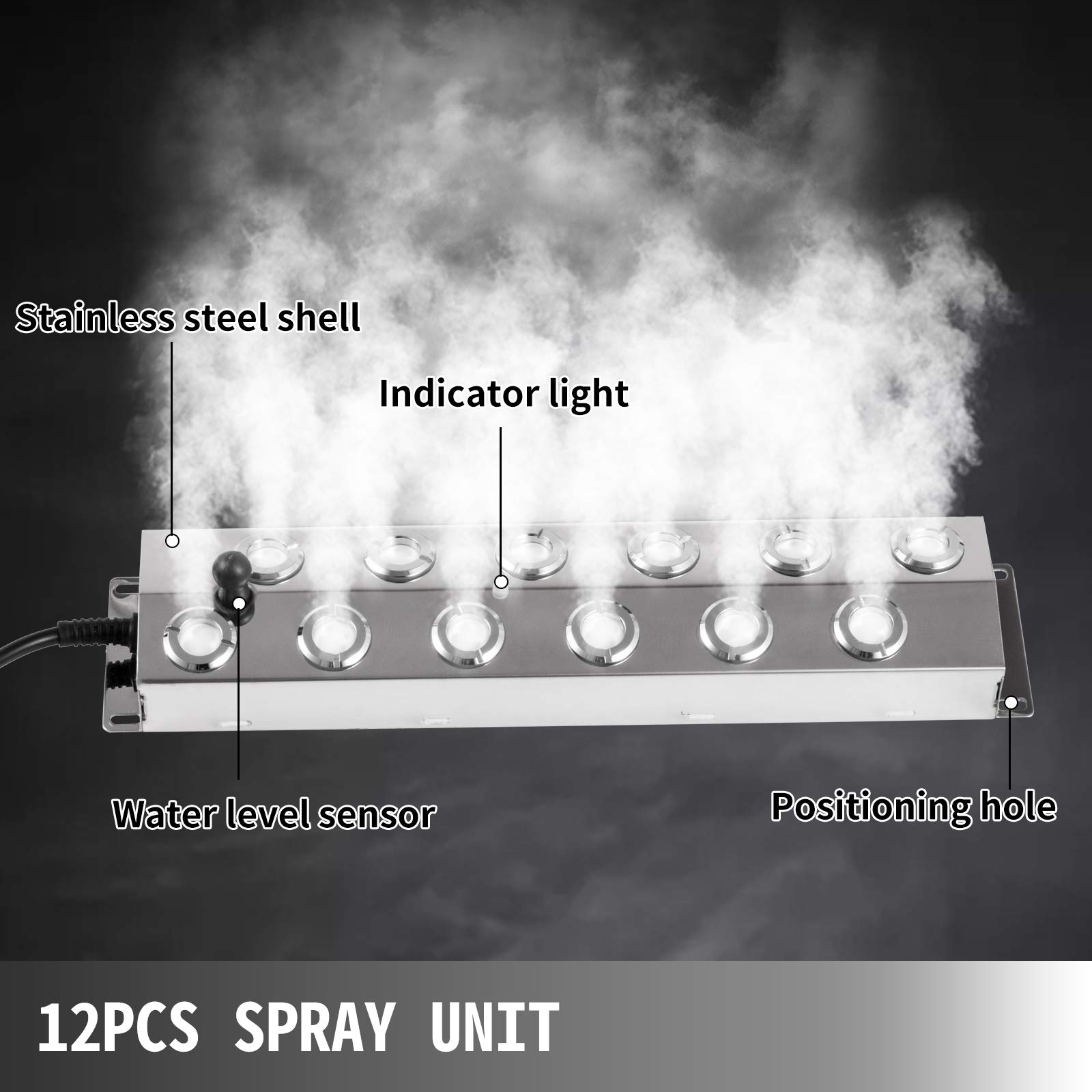 Stainless Steel Humidifier Hydroponic Fountain Pond Atomizer 12 Heads Ultrasonic Atomizer Atomizer