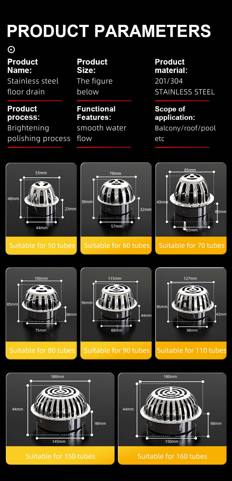 Stainless steel anti-green leaf anti-insect dome type outdoor floor drain balcony anti-odor anti-clogging floor drain cover