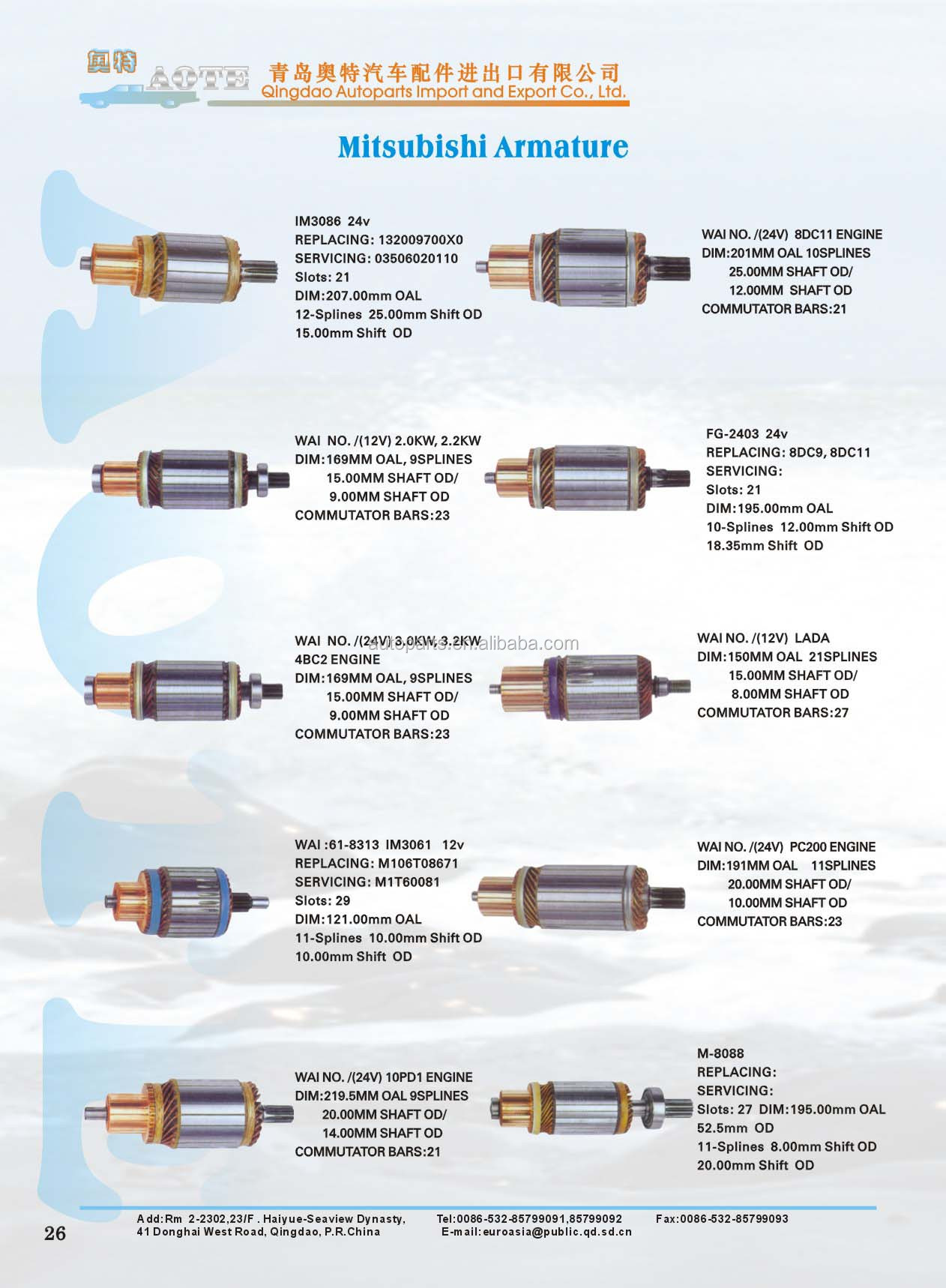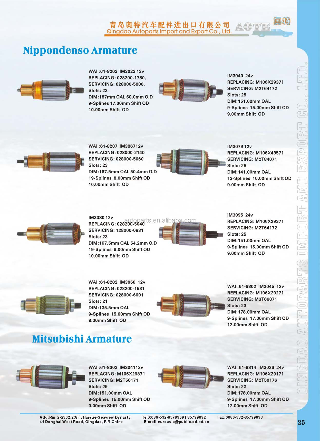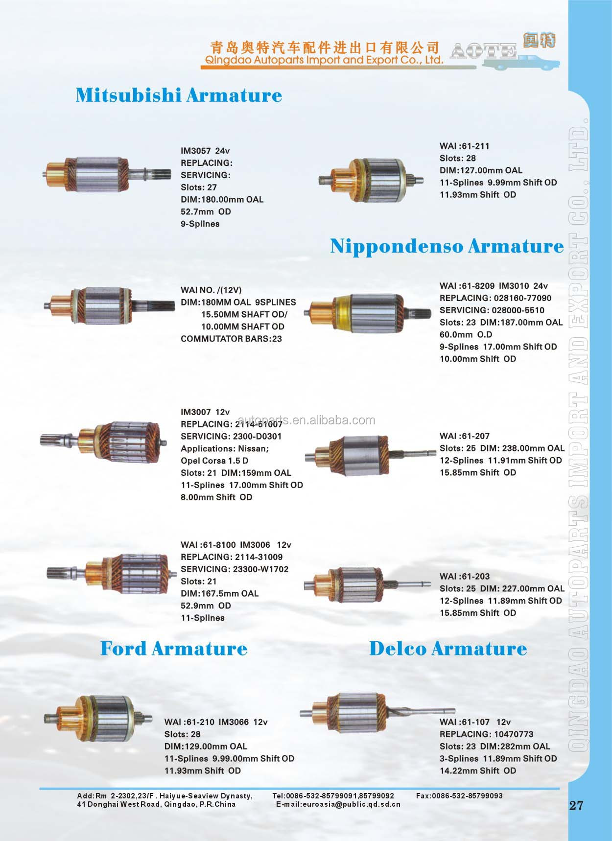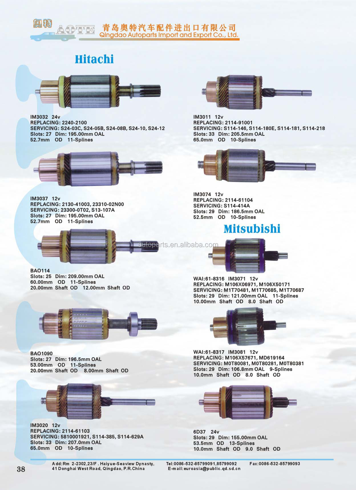 Starter Parts -Starter armature for ND Mitsubishi Delco Hitachi lucas