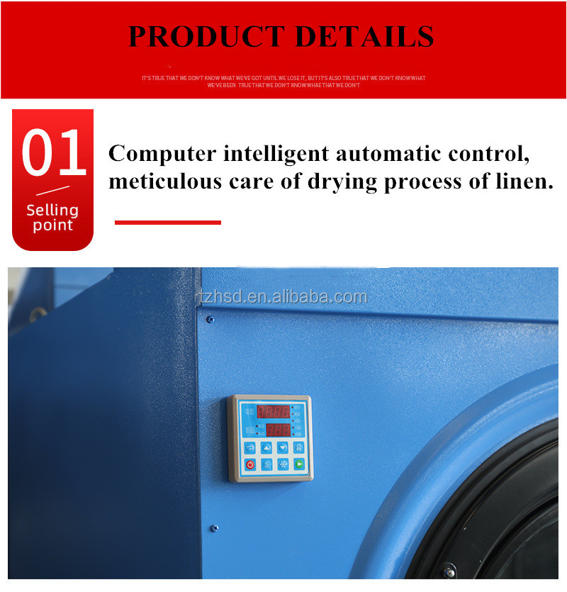 1.Computer intelligent automatic control, user can set according to different drying linen, a variety of temperature and time setting program,meticulous care of drying process of linen. Drying time and accurate temperature setting, touch button design flexible operation.