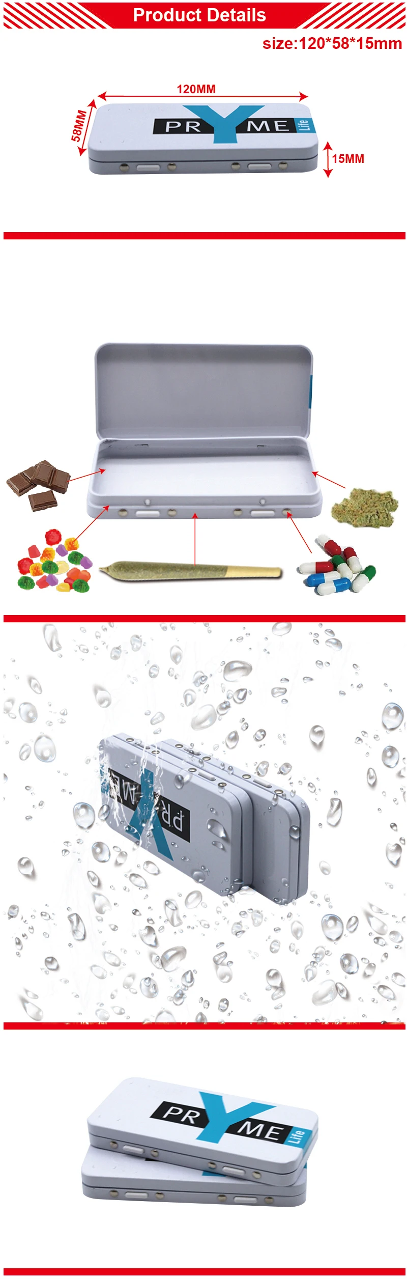 Stock Low MOQ High Quality Rectangle Metal Packing hemp Child Resistant CR pre rolls Mint Gift tin box