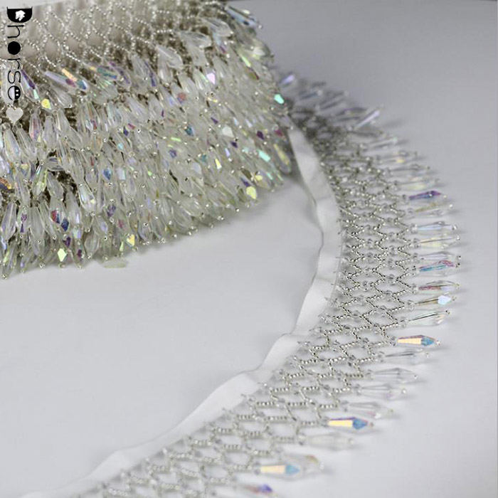 HoFashion 5cm crystal beaded tassel trim for clothing