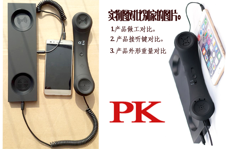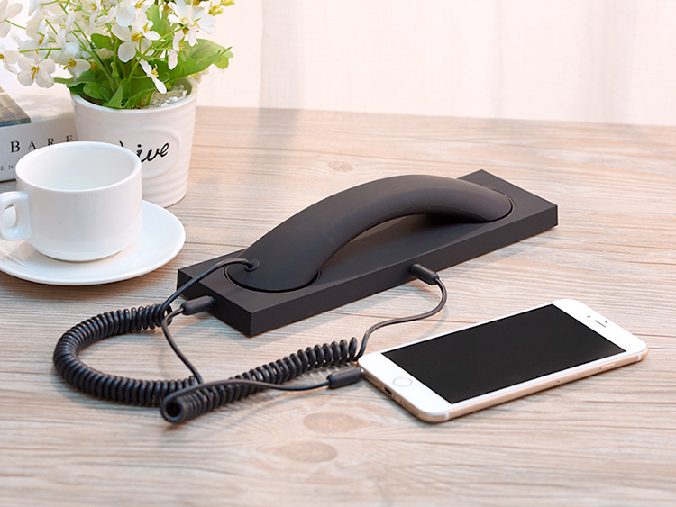 Product name coco retro phone handset Material Type Eco-friendly ABS Phone size: 21 x 3 x 5 cm, base: 25 x 7 x 2 cm Net weight 240g; 300g Package size: White box: 25.5 x 7.5 x 5.5cm Carton: 52.5 x 40 x 30 cm, 50 pieces; 16.25 kg Samples welcome Color black or can be customized Logo Customize the logo according to your requirements