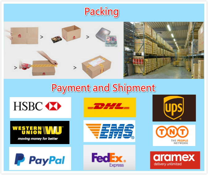 Shipping method: DHL, UPS, FEDEX, EMS, ARAMEX, TNT, DPEX, POST, air freight, sea freight or your freight forwarder
