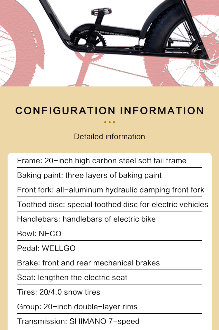 | fetal: | 20" 4.0" fat tires | Wheel Size: | 20 inches |