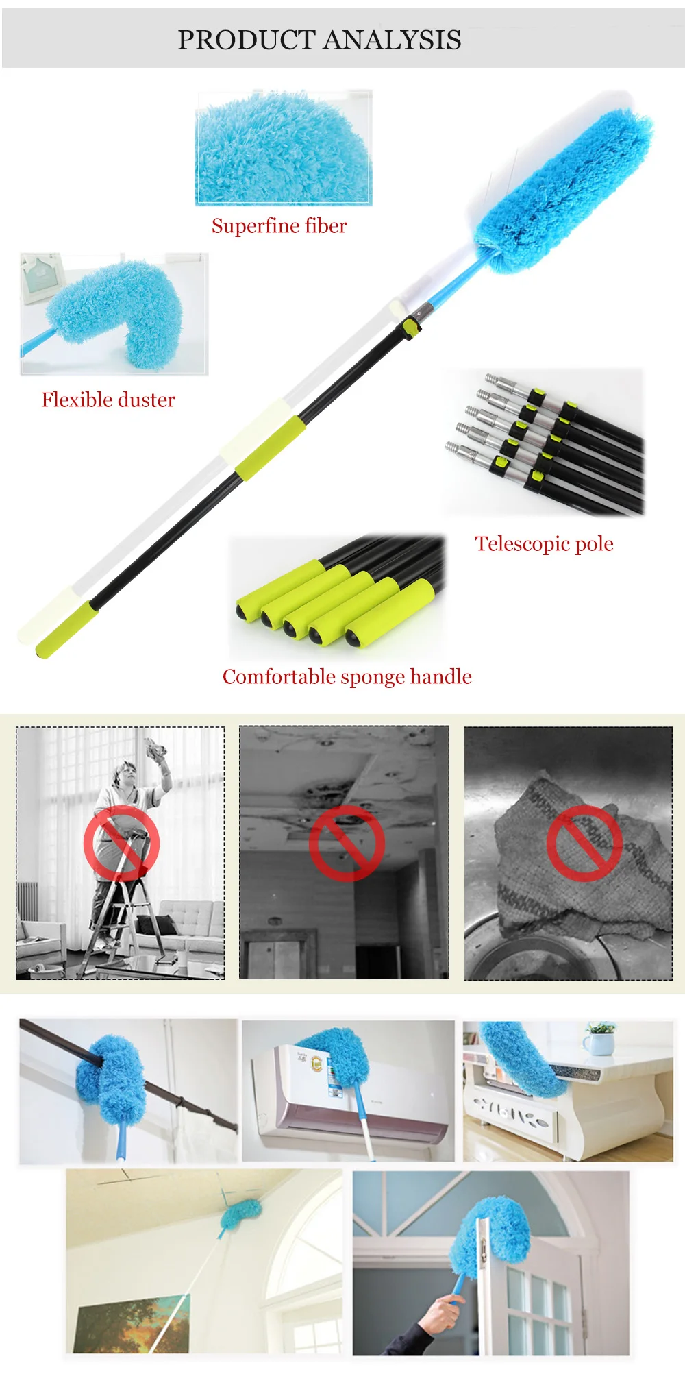 Superfine fiber duster with aluminum light telescopic handle for household Cleaning Tool
