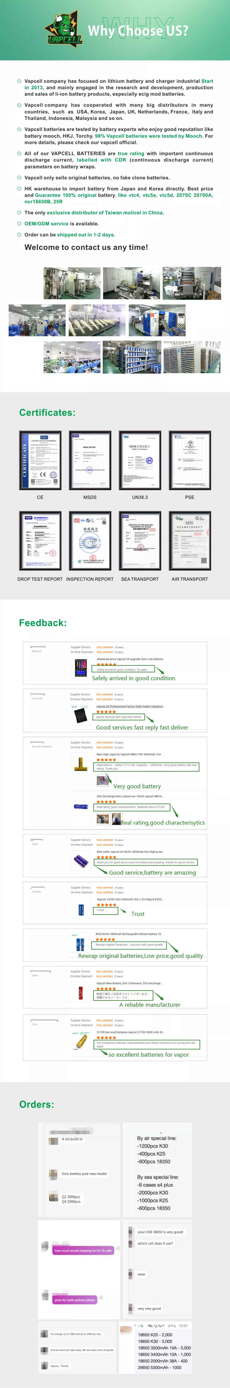 | Certification: | Weiy | brand: | Vapcell, Vapcell |