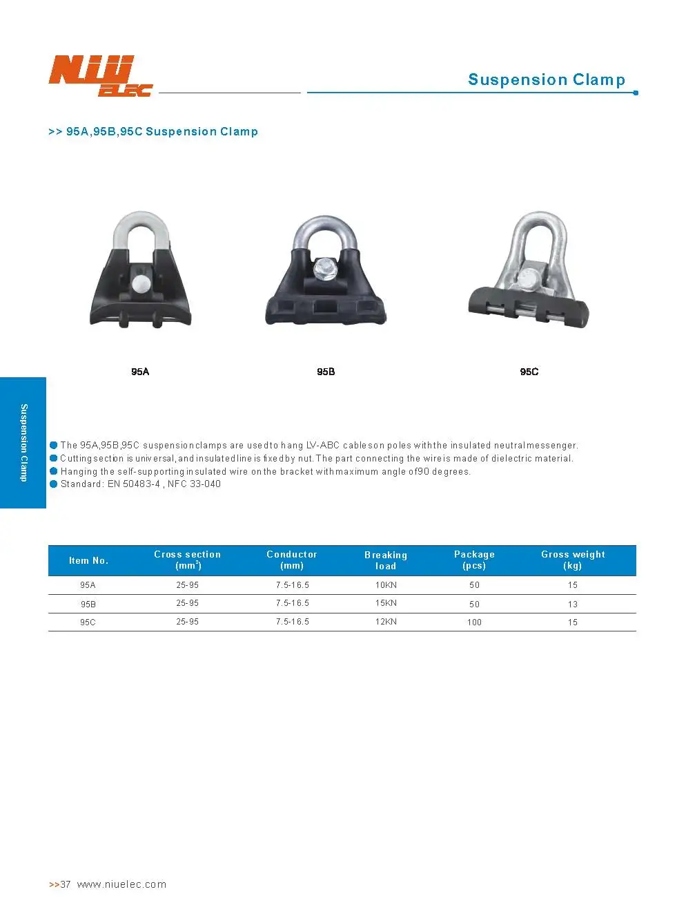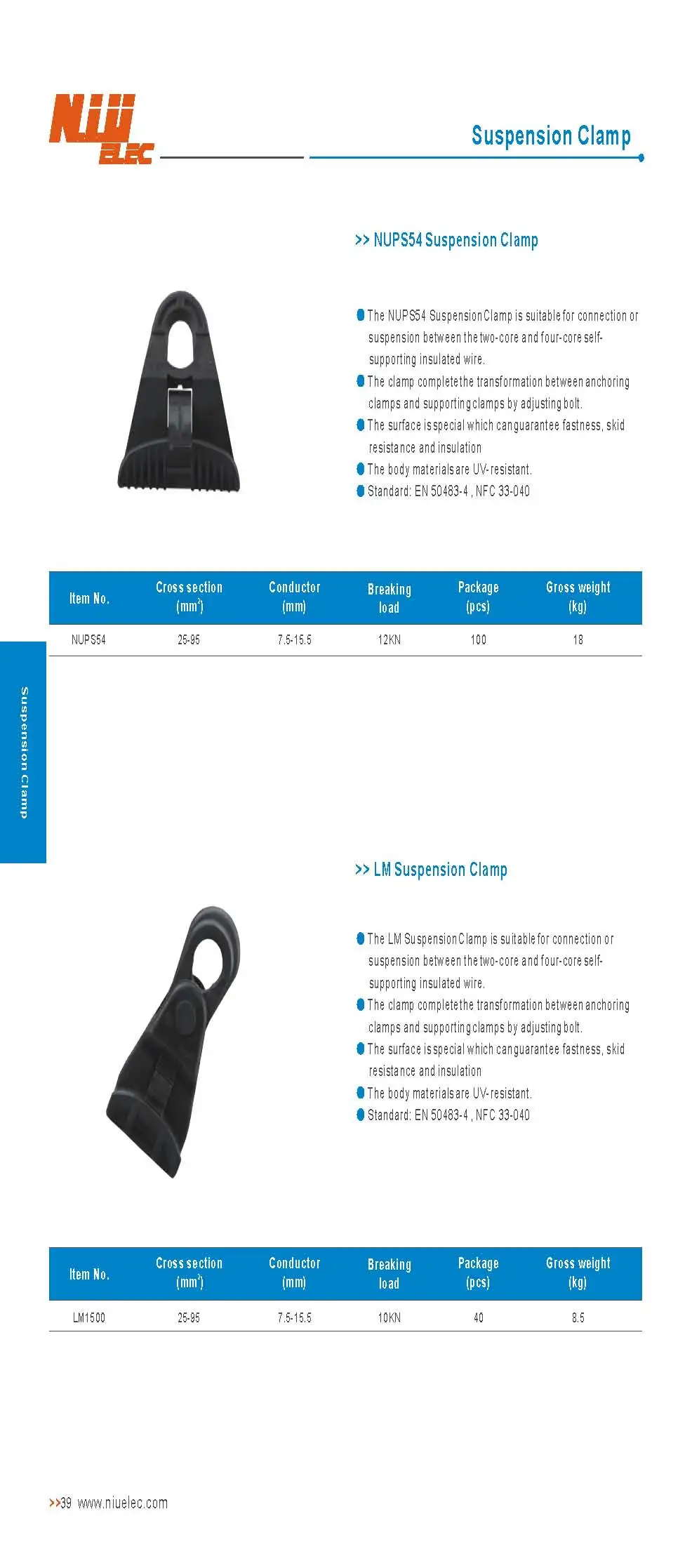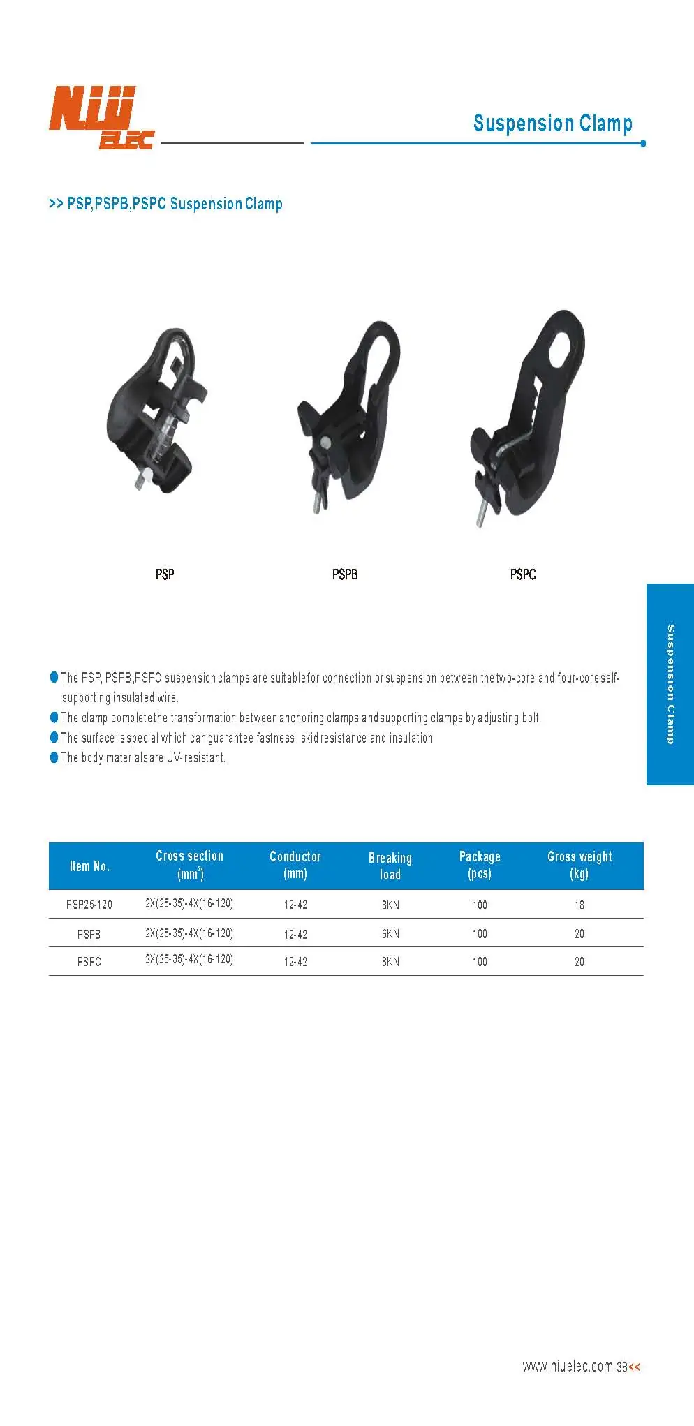 Suspension Clamps For hang ABC cable on poles with the insulated neutral message and accessories