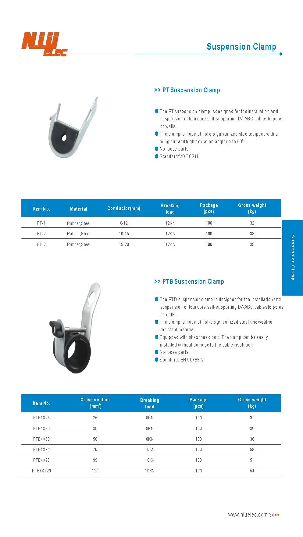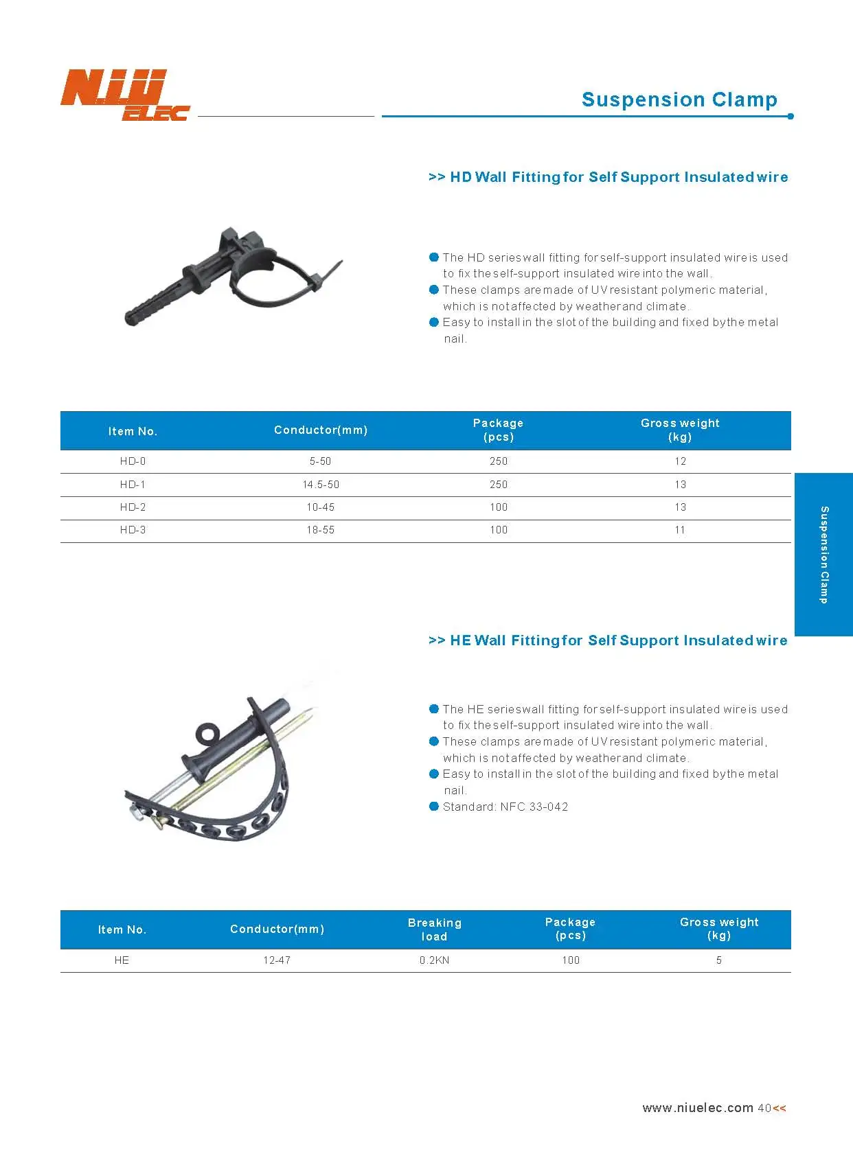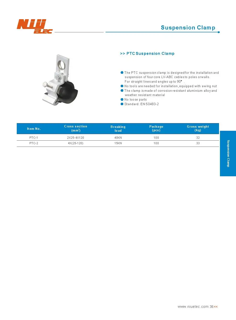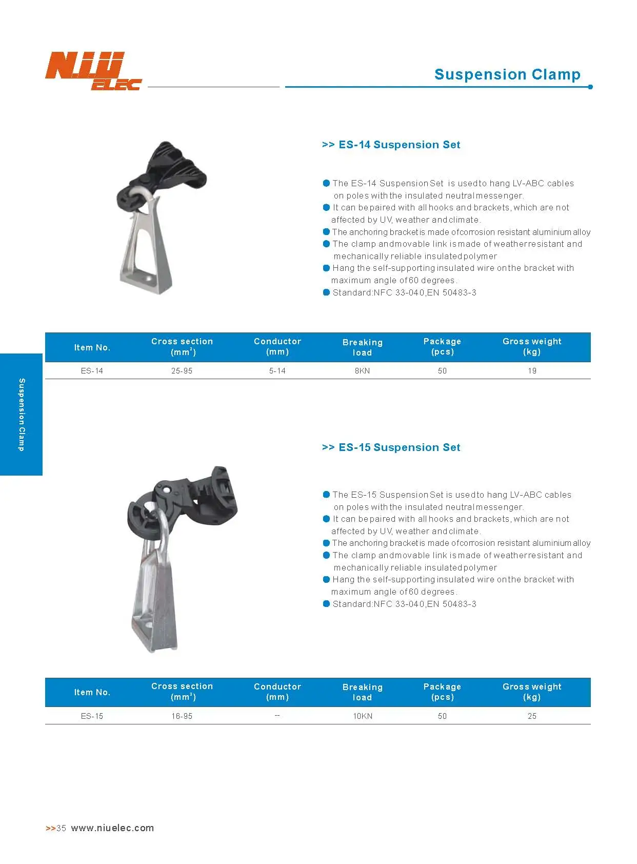 Suspension Clamps For hang ABC cable on poles with the insulated neutral message and accessories