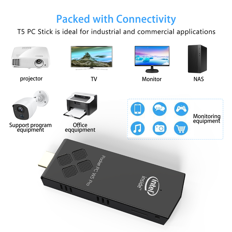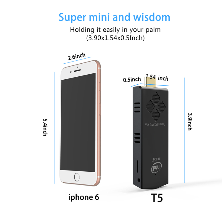 T5B small pocket pc stick portable low power pc pc stick win10 4gb ram mini pc intel atom z8350 mini pc stick work