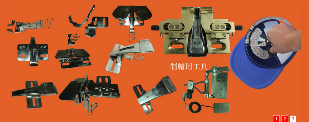 It is a double needle sewing machine hat attachment that tucks the end edge of the hat fabric inward in one seam and automatically separates the straps, separating the seams on both sides.