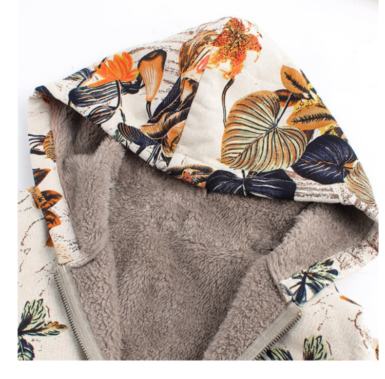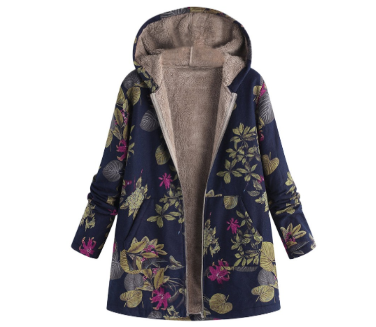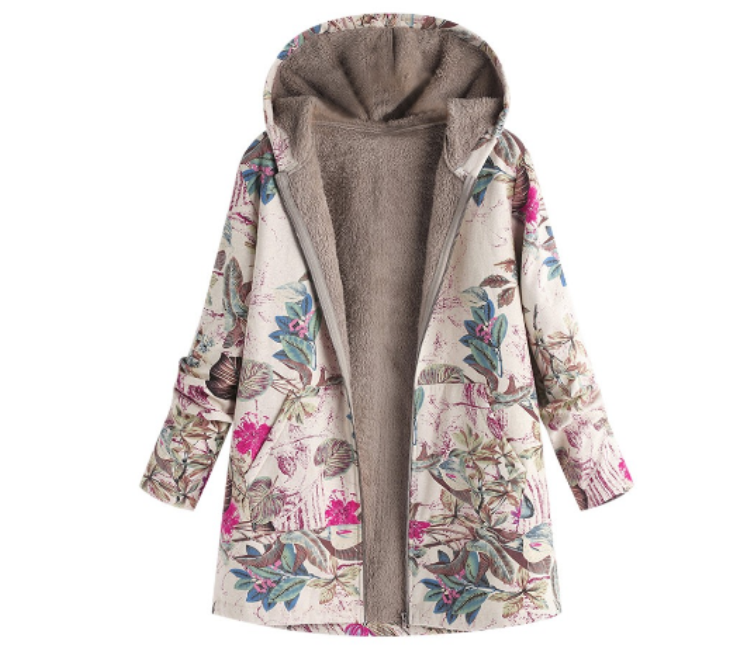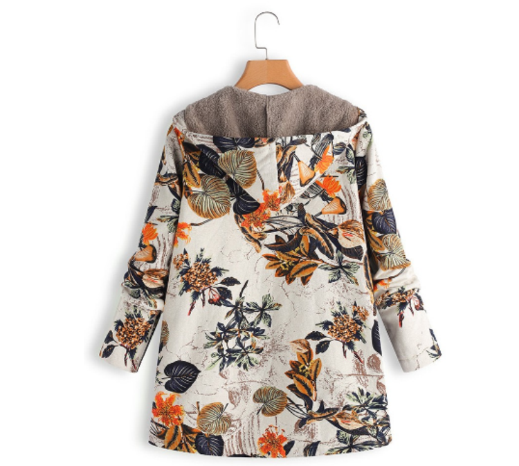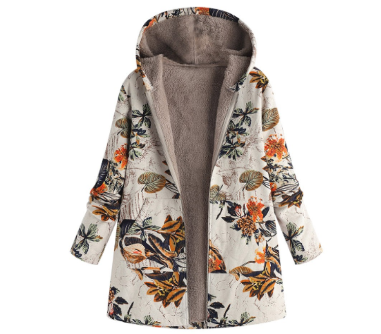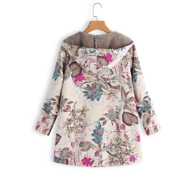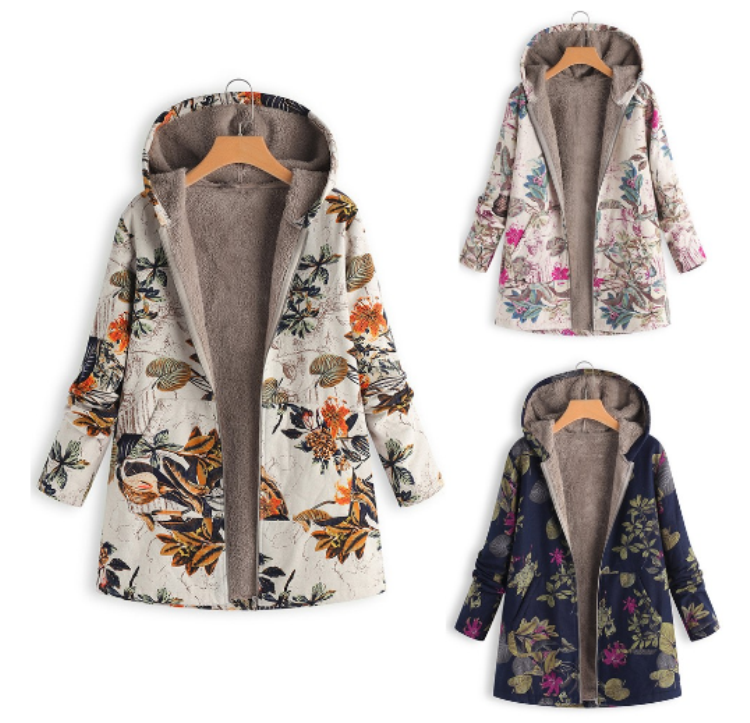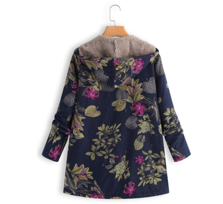 TONGYANG Hooded Coat Cotton Winter Jacket Women's Outerwear Warm Coat Floral Print Hooded Pocket Vintage Coat