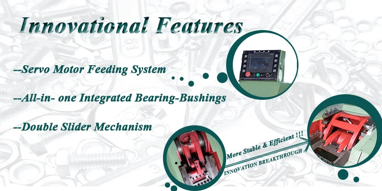 - Not only can be used for manufacturing Normal nuts, like Hex nut, Flanged nut, Square nut, Weld nut, Rivet nut, but also Motorcycle link pin, Oil plug screw, Pipe joint, Chain roller, Bearing roller, Bearing ring, Expansion anchor, Bushing sleeve, Bicycle and Motorcycle shaped spare parts, Auto spare parts, shaped nuts and various shaped pieces of shaped and non-standard items, ect.