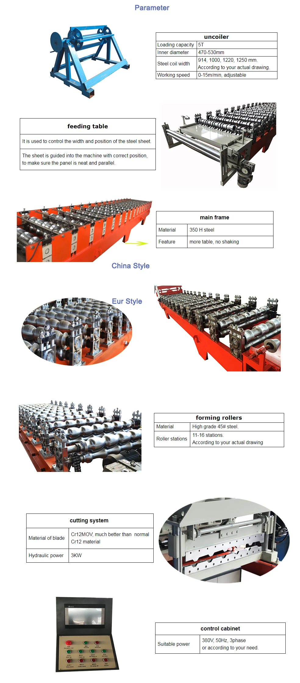 | 2 | Thickness of feeding material | 0.3-0.8 mm coil sheet |