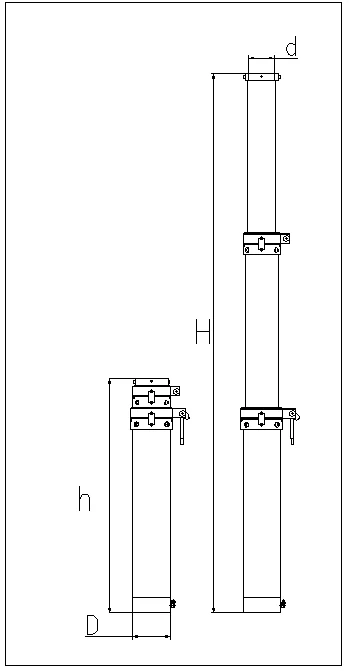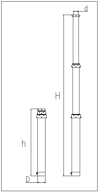 Warm reminder: For product images or app images, Check out the product specification sheet. 2. If you do not find a suitable specification in the table, HYML also designs masts for you, let us know: (1) Mast nesting height/h (2) Mast extension height/H (3) Mast top payload We will then make a mast plot based on your parameters. In addition to marking h, H, we will also mark Mast maximum outer diameter, minimum inner diameter, section, top load weight, working pressure, working temperature, material, surface treatment, net weight and other parameters. See attached drawing. If you need a mast with parts and accessories including controls or mounting flanges etc it will be indicated on the drawing. If your mast has swivel heads and lights it will be indicated in the drawing. If you want to change the picture after seeing it, there is no problem.