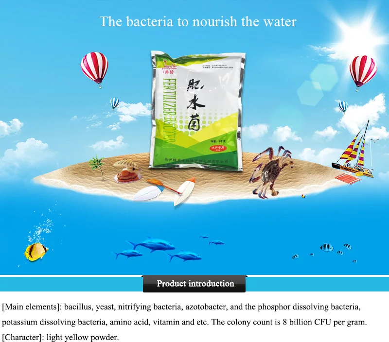 1) This product is complex bacteria group cultivated and selected by new modern biologic technology, mixing several kinds of nutritional substances to the nourished water more efficiently during longer period with less quantity.
