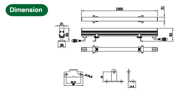 | Control mode: | DMX512/ Customized (0-10V/ Triac/ Dali); | Size: | L1000*W21*H63mm; |