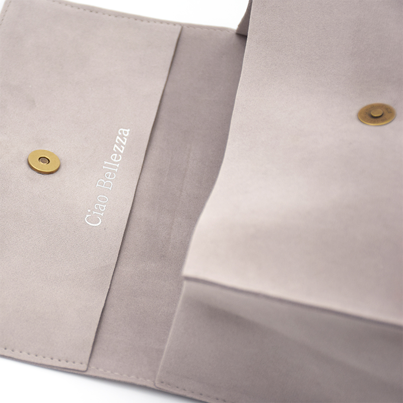 Top sale Custom logo printed Magnet button closure cosmetic bag luxury gray envelope flap suede jewelry pouch for perfume