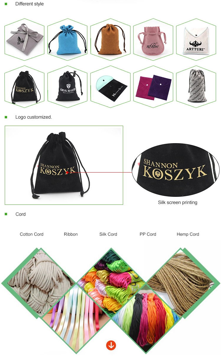 | Material: | Suede; | Packaging Detail: | Small suede jewelry pouch, 1000pcs/CTN; |