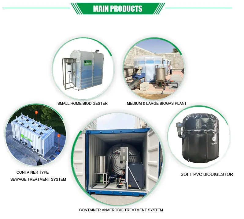 4. It's mainly composed of puxin container constant temperature biogas digester tank (20ft or 40ft), biogas storage bag, biogas generator and other biogas appliances.