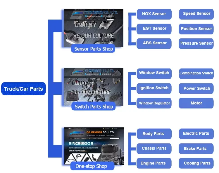 OE Member Co., LTD was found in 2009 in Ruian city, the capital of auto parts in China. We specialize in producing and exporting truck parts such as sensors, switches, brake parts, body parts, chassis parts, suspension parts, cooling system parts, trailer, tractor and bus parts, with totally 15 series and over 13600 items in our system and we are develop and adding new products every half year. Our products are mainly exported to the USA, Canada, Mexico, South America, Russia and European countries.