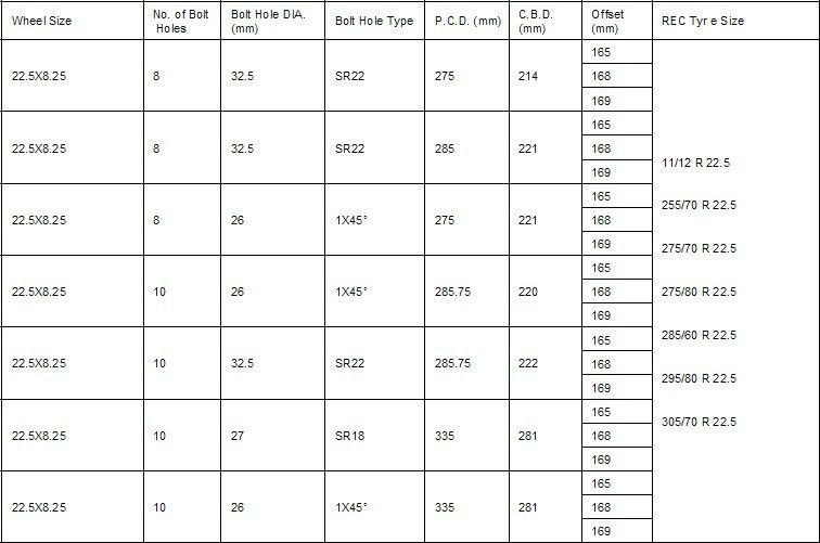| Bolt hole diameter: | 21.5 | offset: | 165/168/169 |