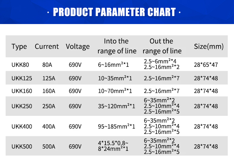 | Product number | UKK500A/400A/250A/160A/125A/80A |