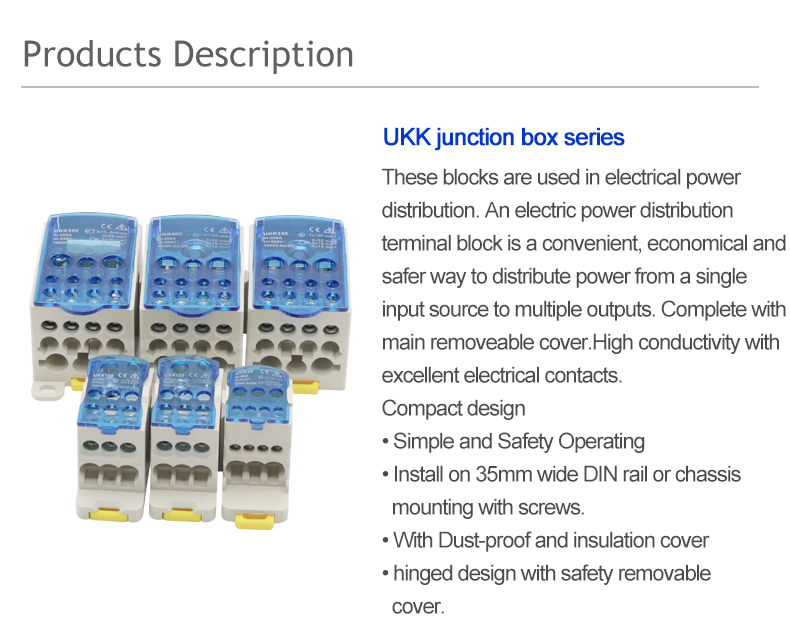 UKK Junction Box ZHEDIAN Brass Conductor Distribution Screw UKK DIN Rail Terminal Block Series
